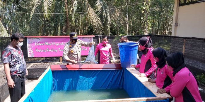 Penaburan Benih Ikan Lele dan peremajaan Kebun Tanaman Obat Tradisional (Rempah-rempah) pada Kebun Mini Organik dan Kola Ikan atau Media Tanam dan Media Ternak Ikan “Taman Ketahanan Pangan Mapolsek Tandun” (Hidroponik Polsek Tandun) Pinkers Ranting Tandun Cabang Rohul.